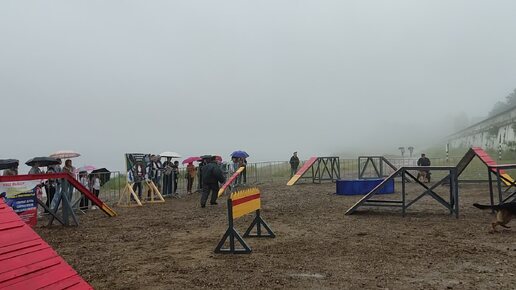 Работают собаки с кинологами, показательные выступления