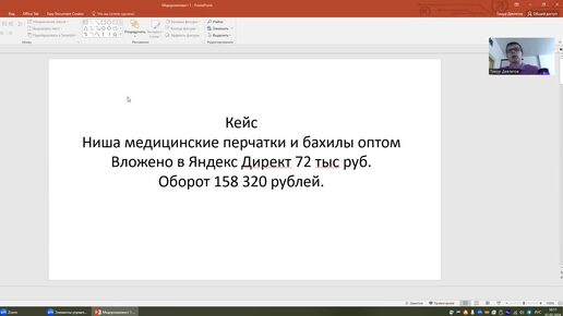 Кейс: Медицинские перчатки и бахилы оптом Яндекс Директ: вложено 72 тыс руб, выручка 158 тыс руб.