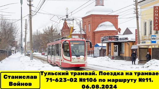 Тульский трамвай. Поездка на трамвае 71-623-02 №106 по маршруту №11. 06.08.2024