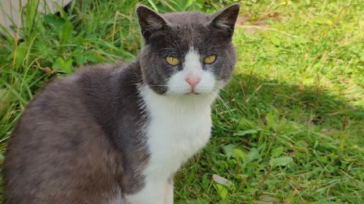 Лето для бездомных кошек - самое лучшее время на даче. Бездомный кот Гоша пришел и выпросил пакетик корма для кошек. Гоша не боится людей