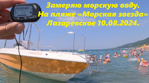 Замеряю температуру морской воды на пляже "Морская звезда" Лазаревское 10.08.2024.