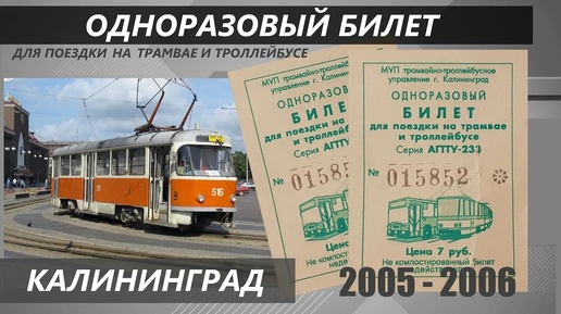 Одноразовый Билет для поездки на Трамвае и Троллейбусе города Калининграда . 2005 - 2006 год
