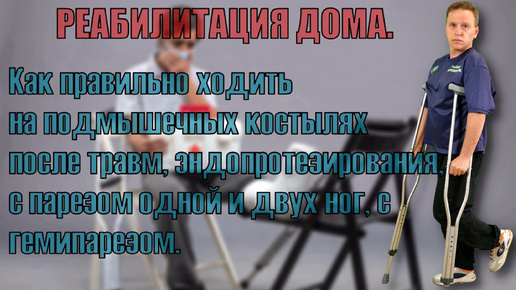 Реабилитация дома. Как правильно ходить на подмышечных костылях после травм, эндопротезирования, с парезом одной и двух ног, с гемипарезом.