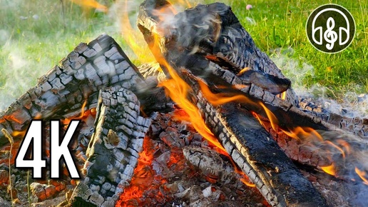 Нежный утренний костер со звуками стрекотания кузнечика