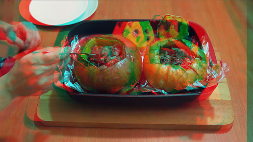 3D stereo red-cyan Говядина в тыкве в духовке