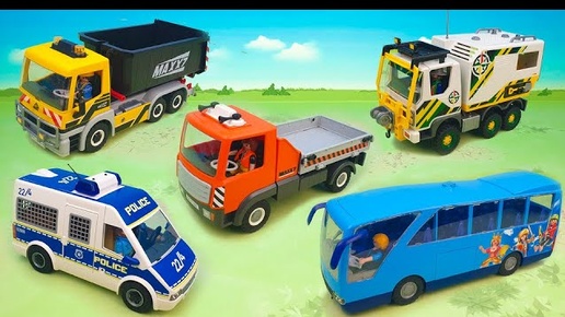 Бульдозер Эвакуатор Экскаватор Полицейская машина Грузовик Самосвал - распаковка для мальчиков