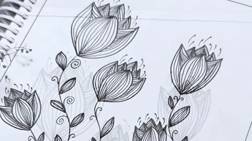 Рисунок цветов в стиле зендудл. Зентагл арт