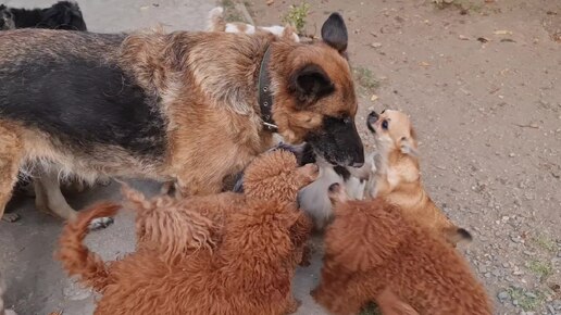 Немецкая овчарка Сабина и той-пудель чихуахуа Кастропуло Крым