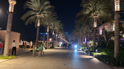Дубай🇦🇪[4K] Palm Jumeirah, вечерняя пешая прогулка