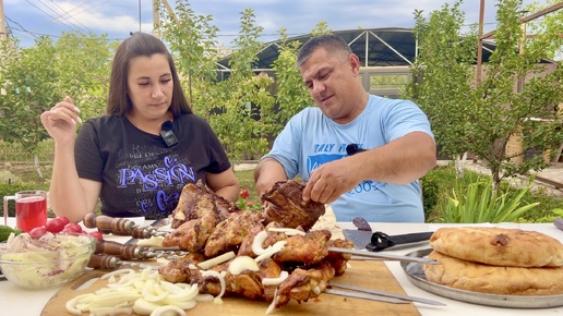 Готовим вкусный ужин из мяса Барана на вертеле и Шашлык из куриных крылышек на мангале.
