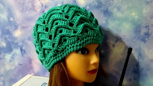 Осенняя шапочка крючком объёмным 3Д узором. Видео для начинающих.