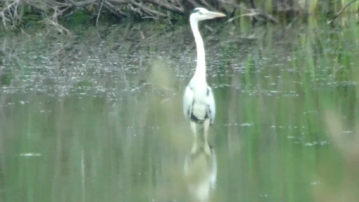 Напудренную цаплю удалось застать лесным пожарным за охотой на озере под Минусинском