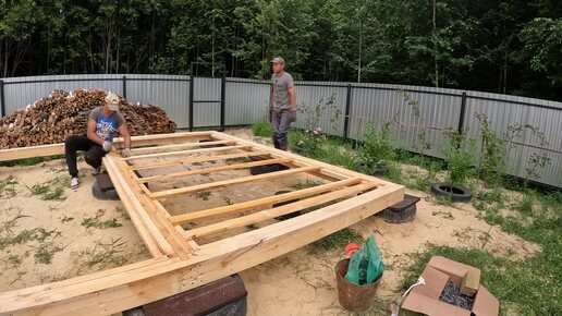 Каркасная баня на фундаменте из покрышек!