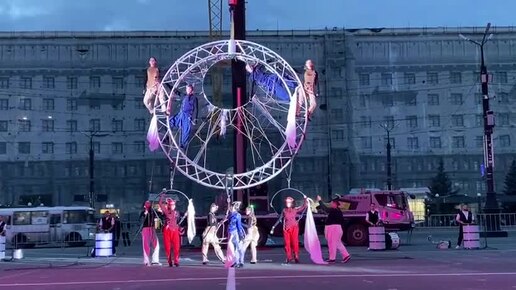 Головокружительный трюк артистов на фестивале уличных театров в Челябинске