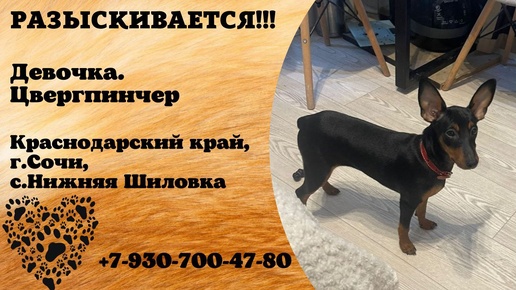 Пропала собака! Девочка.Цвергпинчер. Краснодарский край,г.Сочи