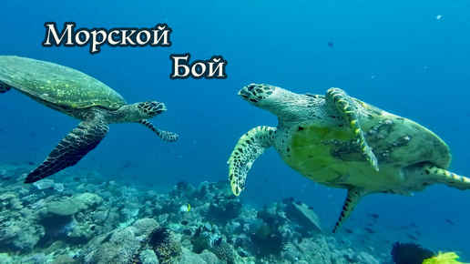 Две черепахи дерутся под водой.