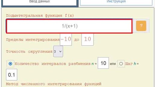 Формула прямоугольников при численном интегрировании