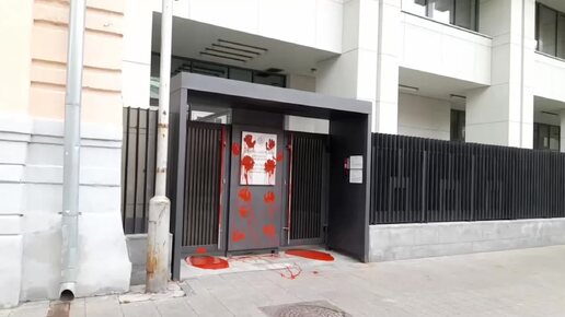 Входы в здание посольства Литвы в Москве облили красной краской