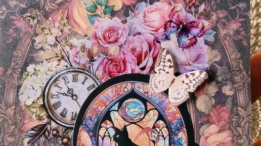 «Следуй за котиком» 🐈⬛🦋🕐 Скрапбукинг открытка №10
