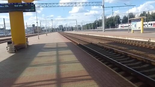 ЭПм сообщением " Минск Пассажирский-Гродно", отправляется с тупика. Станция Минск-Пассажирский.