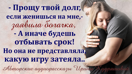 - Прощу твой долг, если женишься на мне, - заявила богачка, -А иначе будешь срок отбывать!