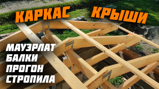 Каркас крыши и Стропильная система. Монтаж мауэрлата, потолочных балок и Коньковый прогон.