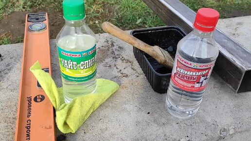 Подготавливаю металлические столбы для забора к покраске