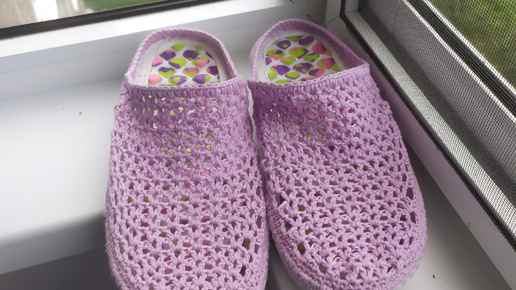 ШЛЕПАНЦЫ КРЮЧКОМ НА ПОДОШВЕ.