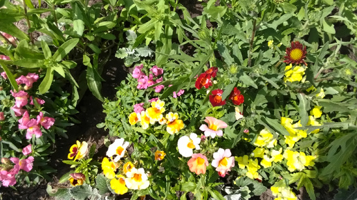 Цветы на клумбе, после дождей, затянула мокрица .