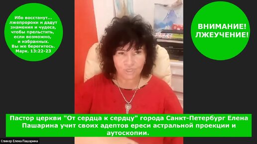 Пастор церкви «От сердца к сердцу» г. Санкт-Петербург Елена Пашарина учит ереси астральной проекции и аутоскопии