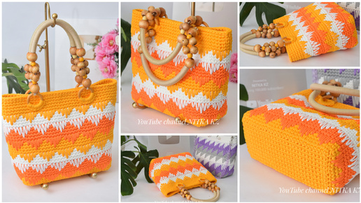 Видео Мастер-класс по вязанию сумки из полиэфирного шнура с узором Ромбы