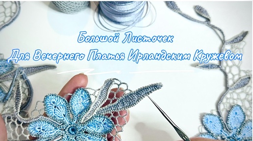 Большой листочек для вечернего серо-голубого платья. Мастер-класс. Ирландское кружево.