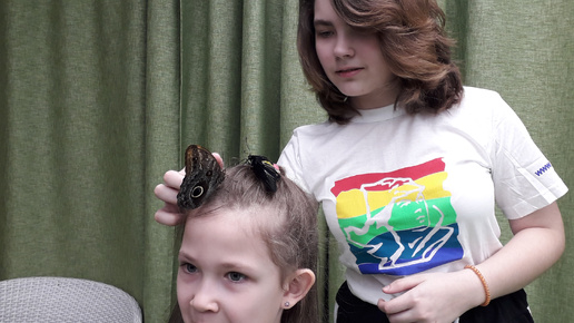 Бабочки вместо заколки. Девчонки в восторге. Где погулять с детьми. Парк бабочек в Санкт-Петербурге.