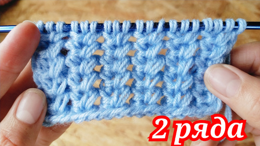 Объемный АЖУРНЫЙ УЗОР спицами ✅ ВСЕГО 2 РЯДА 💙