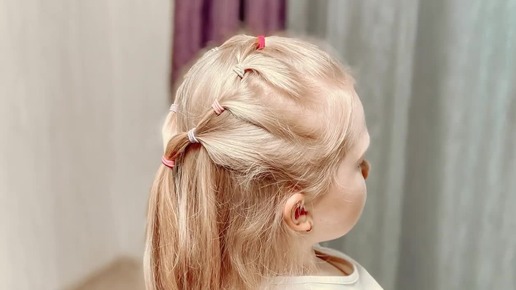 Прическа с цветными резинками на распущенных волосах