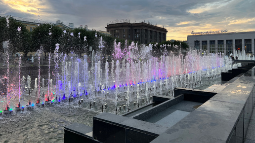 Поющие фонтаны напротив Финляндского вокзала в Санкт-Петербурге
