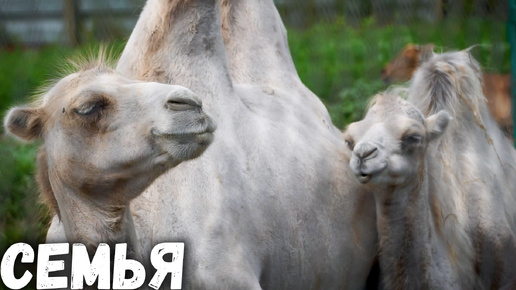 Верблюд Вики и её малыш что-то жуют и отдыхают. Барнаульский зоопарк