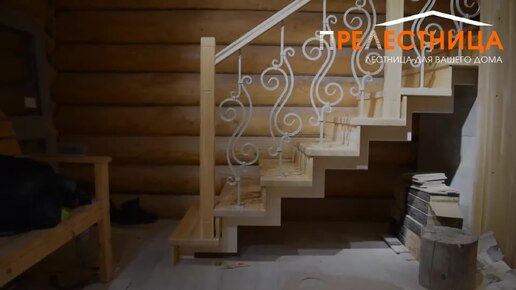 Лестница на второй этаж в бревенчатом доме тандем-27