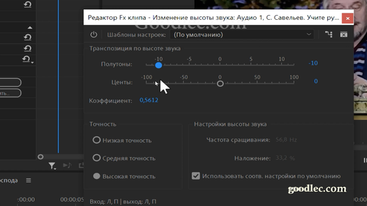 Ускорить аудио без искажения голоса в Premiere Pro