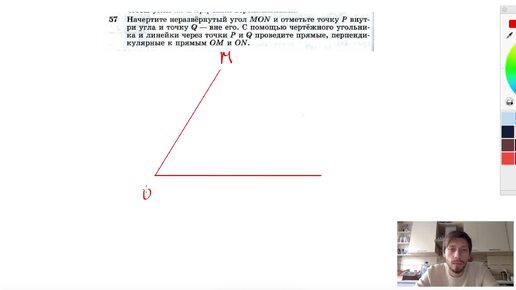 №57. Начертите неразвернутый угол MON и отметьте точку Р внутри угла и точку Q — вне его.
