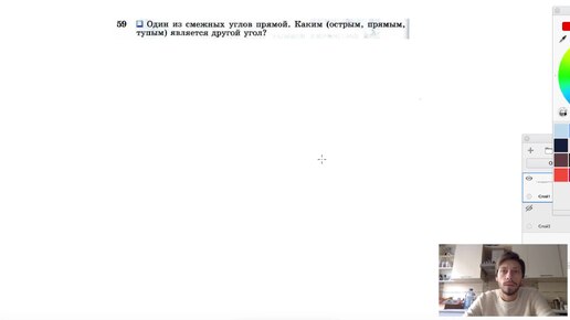 №59. Один из смежных углов прямой. Каким (острым, прямым, тупым) является другой угол