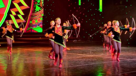 Средний состав ансамбля народного танца "Кружева" - Башкирский танец "Уксы Катын Кыз" (Девочки-лучницы)