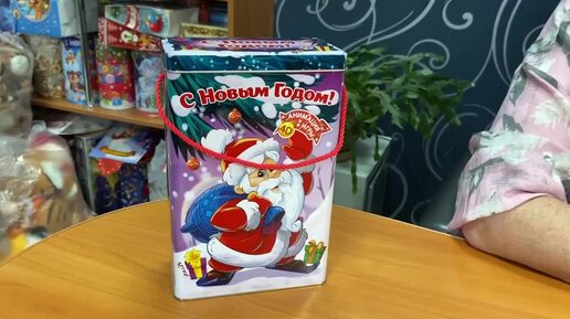 Сладкий новогодний подарок Короб С Дедом Морозом 1000 грамм в жестяной шкатулке