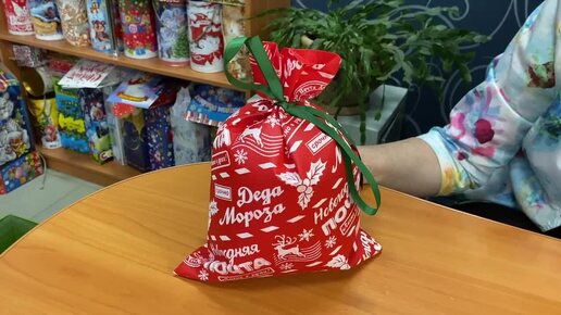 Сладкий новогодний подарок Мешочек из спанбонда красный 500 грамм в текстильной упаковке