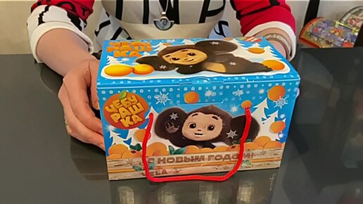 Сладкий новогодний подарок Посылка Чебурашка 900 грамм в картонной упаковке