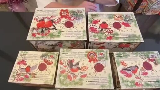 Сладкий новогодний подарок Посылка Снегири на рябине в упаковке из фанеры