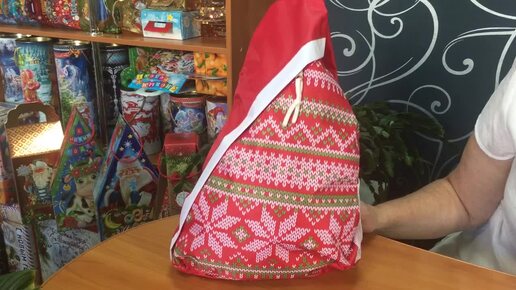 Сладкий новогодний подарок Рюкзак c орнаментом 2000 грамм в текстильной упаковке
