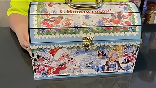 Сладкий новогодний подарок Сундучок голубой 1700 грамм в упаковке из фанеры