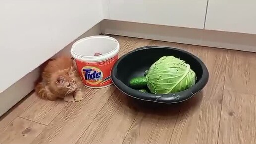 Кошки боятся огурцов, но только не мейн-кун Степан. Нападение кота на огурец.