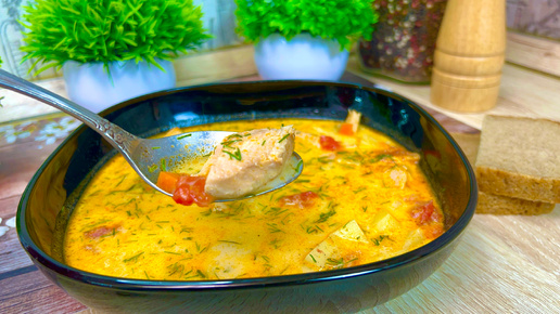 Уха из горбуши со сливками. Быстрый и вкусный рыбный суп